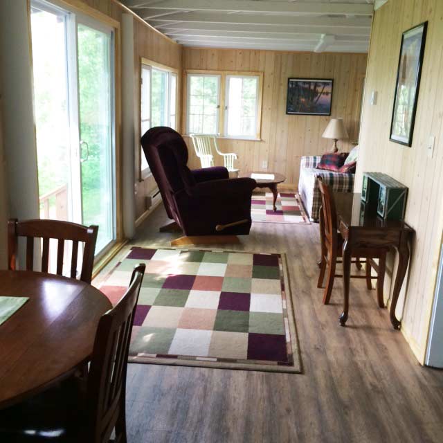 Our lakeside cabins feature 2 or 3 bedrooms and are available for rent weekly. The cabins are all very spacious and have incredible views of Wabana Lake. Dock space is included with each cabin rental and the public landing is minutes away. Check out our gallery below to learn more about our cabins.